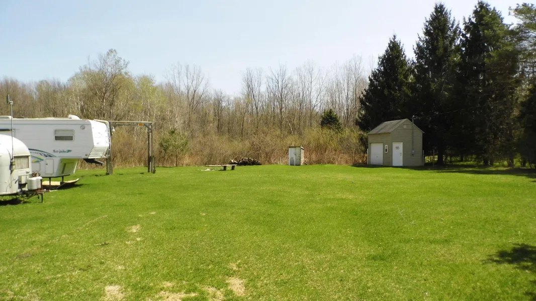 27 acres of hunting land, fully wooded, with a well maintained campsite and electric on site. Shed has power, and would make a good place to store the necessities. Secluded location on a quiet gravel road, only 1/2 mile from asphalt. Lots of farmlands in the area providing feed for the deer and turkeys. Property is mostly poplars, birch, cherry and some maple. Deer blinds in place. Good trail system to get you around the acreage. Nice thick woods. Property will have wet areas after big rains and snow melts. Place where the deer stay and not just pass thru. Small opening toward back of parcel would be a good spot to drop in a food plot. Property has been in the family for 30+ years. Seller harvests deer annually.