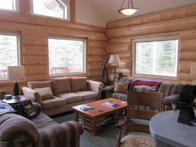 This impressive log home sits on the banks of beautiful Kenai Lake, a 22 mile long "zig-zag" shaped lake located near Cooper Landing on Alaska's famed Kenai Peninsula. The lake forms the headwaters of the world-famous Kenai River and is itself a popular destination for fishing and other outdoor activities, including kayaking, hiking, and wildlife viewing. Other Kenai Lake tributaries of fishing significance include Quartz Creek, Ptarmigan Creek and the Trail River and Lakes. The lake itself holds resident Lake Trout, Whitefish, Rainbow Trout and Dolly Varden as well as Sockeye, King and Silver Salmon migrating through to the tributaries. Some Sockeye will use shoreline gravel for spawning. Salmon fishing is closed in the lake but some anglers fish for trout and char. Many rainbows and dollies from the lake to the Kenai River or the tributaries for spawning, summer habitat or fall feeding. In addition to world-class fishing this area offers many opportunities for hunting Moose and Black Bear. The surrounding Kenai Mountains tower above this glacially carved valley on all sides. Mountain Goat and Dall Sheep are frequently seen on the high cliffs as Eagles sit silent and watchful in trees along the shore. The 3,456 square foot log home was constructed in 2000 and sits on 8.4 acres of beautifully treed property. Spacious, open living and dining area features a soaring vaulted ceiling and large picture windows overlooking the lake. Two bedrooms, a full bath plus a three-quarter bath and a half bath, plus a roomy open sleeping loft ensure plenty of room for your family and guests. The kitchen boasts plenty of cabinets and counter-space, a breakfast bar, modern appliances and a beautiful antique wood-fired cook stove. Additional outbuildings include a sleeping cabin, wood shed, boat house, and pole building. This is luxurious lake-front living in one of the most beautiful spots on the Kenai Peninsula, with access to some of the best fishing and hunting in the world