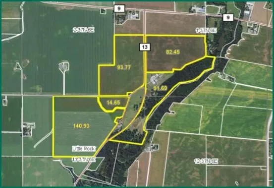Property is a combination of high quality, Grade A tillable farmland, pasture and timber for livestock along with livestock facilities, as well as recreational areas along the Big Rock Creek.