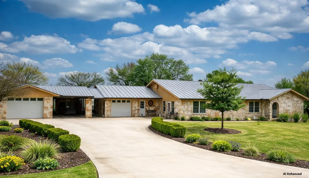 A Home You will Enjoy Living In! 2,700+ square foot native stone home located on .70 acres with no city taxes. Just 6 minutes to medical facilities, HEB and shopping. This property features an open-concept family living layout with two living areas, a separate dining room, and a kitchen with bar seating and new cooktop. The great room includes a fireplace, and the primary suite also features its own fireplace. The floor plan offers 3 bedrooms plus a dedicated office and 2 bathrooms. The den, pantry, and utility rooms provide additional functional space. A metal roof means lower insurance rates, Parking and storage are extensive with a 1-car garage that includes a workshop, an additional single-car garage, and a carport. Recent updates (2 years) include a new septic system, HVAC system, new solid surface counter tops, along with multiple additional improvements throughout the home. Exteri...