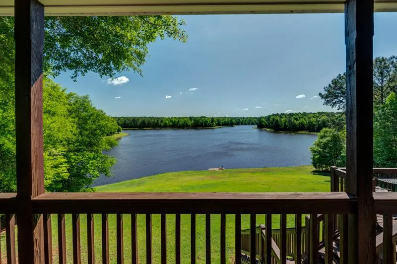 As you enter the gate and traverse through the pines, there is an immediate feeling that there is something special that awaits you. You would be correct! A gorgeous 6,1000 square foot, 5 bedroom 4 bath coastal living style home awaits you with an incredible view overlooking a sprawling 50 plus acre lake. The masterfully designed staircase is breathtaking. The home is filled with hard wood floors bursting with character, marble tile baths, granite countertops, tongue and groove pine walls and an abundance of natural light streaming into the home. There are two full kitchens and two full laundry rooms making this home ideal for hosting family and guests. Outdoor living begins with the massive covered porch, well appointed outdoor cooking area, and multiple deck areas overlooking this stunning property. The uniqueness, the style, the views, the feeling of this property is something you have to see to really appreciate.