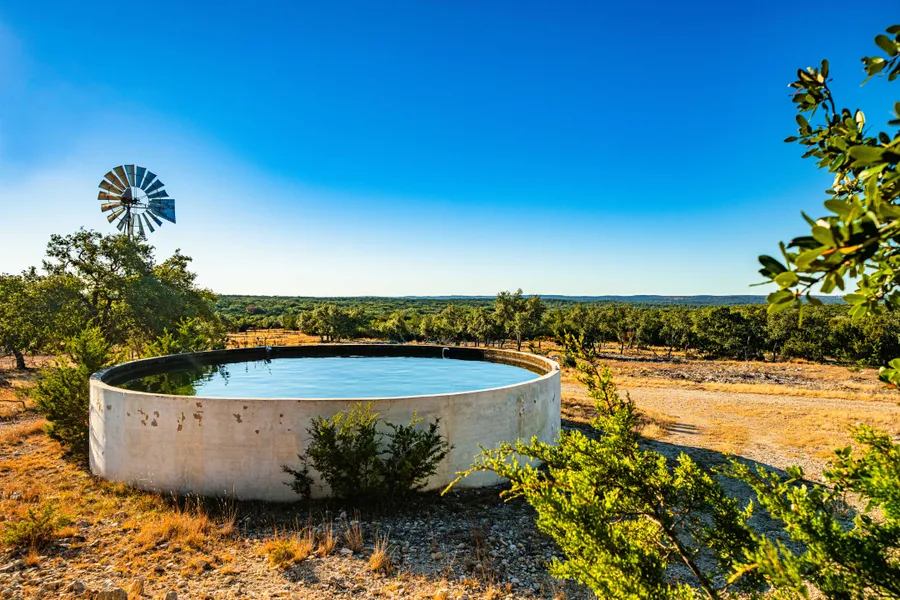 The ranch has two water wells located in the north and south areas: one submersible and one windmill. A large concrete pila is adjacent to the windmill and water troughs provide water for wild game and livestock.