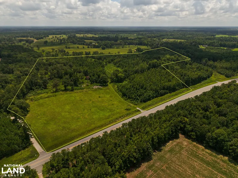 A 5-acre pasture fronts the highway, offering an ideal location for a homesite, business, or small agricultural operation. Beyond the pasture, a well-established trail system winds through flat terrain accented by scattered mature hardwoods and open clear-cut areas. These features create prime habitat for both big and small game, making it a great choice for deer, turkey, and small game hunting.