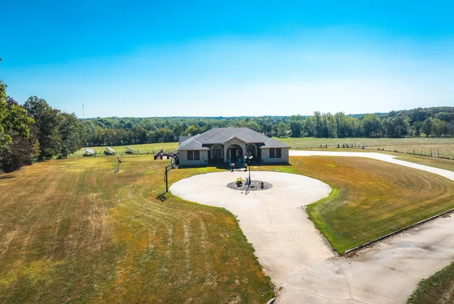 This exceptional 4-bedroom, 5-bathroom home (3 full and 2 half baths) offers over 5,000 square feet of exquisite craftsmanship, all set on 8 acres, with the option to purchase an additional 85 acres. As you approach, a gated concrete driveway welcomes you to the property, which is equipped with a powerful 48,000-watt solar system and a 3-car garage.