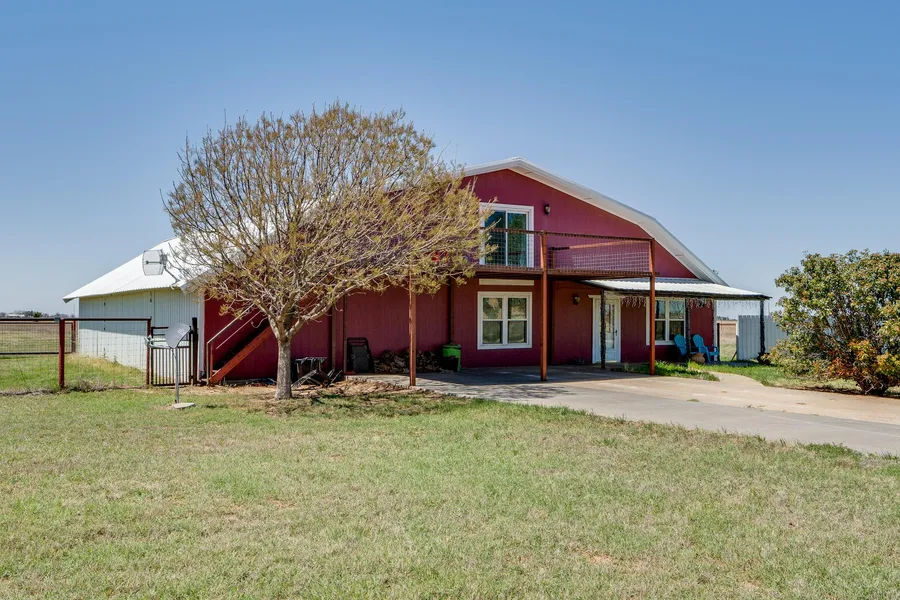 Located Near the town of Munday TX, this 25.5 acre property includes a 3 bedroom 2 bath barndaminium setup for anyone with horses, cattle or just wanting to be in the country. As you enter the two story barndaminium there is a large wood burning stove and 20ft ceilings that feature the open floor plan with the den and dining room opening into the kitchen.