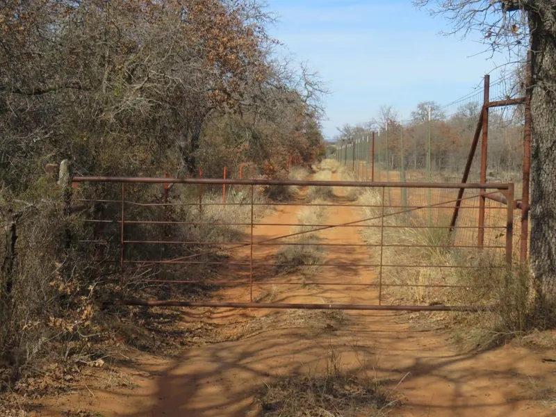 Secluded property SW of Caddo with good recreational and agricultural appeal. There are 6-7 stock tanks with headwater drainages for Little Cedar Creek. A scenic ridgeline runs through the southwestern portion of the property providing impressive distant views. Higher terrain is level to rolling with previously cultivated fields and pastureland. Tree cover consists of live oaks, cedar and mesquite. There is some active production on the property and no minerals. A large transmission line crosses the eastern part of the property. There is an old home serves as a hunter's weekend getaway and there are some old cattle pens nearby. The ranch is perimeter fenced with some internal cross fencing.