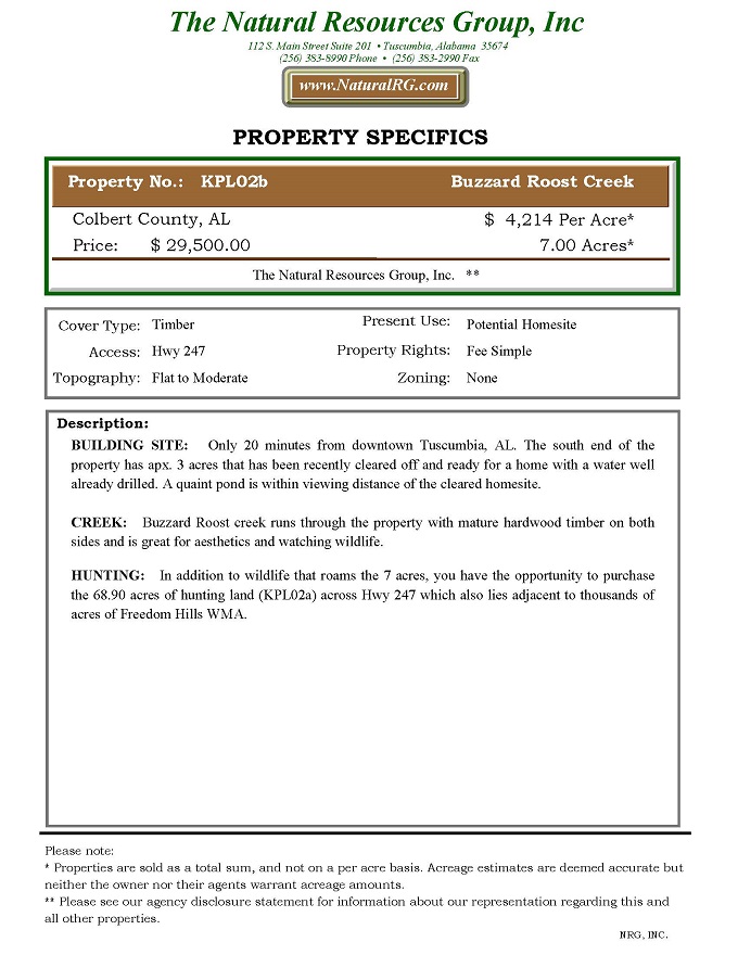 BUILDING SITE: Only 20 minutes from downtown Tuscumbia, AL. The south end of the property has apx. 3 acres that has been recently cleared off and ready for a home with a water well already drilled. A quaint pond is within viewing distance of the cleared homesite.