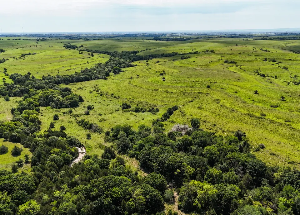Located just 2.5 miles east of the Tuttle Creek Reservoir spillway in northeast Kansas, Krouse Brothers Ranch presents a rare opportunity to own a substantial tract in one of the state’s most desirable recreational and agricultural regions. The property includes rolling native grass pasture, hardwood-lined draws, spring-fed drainages, and a central creek-like corridor, all contributing to excellent habitat for wildlife and livestock.