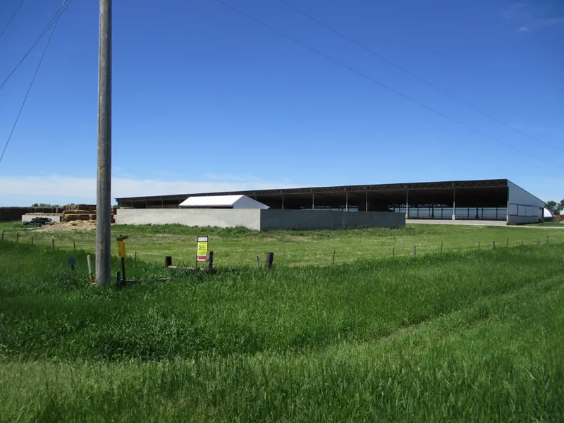 This site consists of a 9.88 acre feedlot with a 56,000 square foot Summit Monoslope barn, which has four 120' X 83' pens, an 83' X 40' sick bay, and two 60' X 20' manure bays. There is also an 80’ x 35’ commodity feed shed with four bays and two bunker silos with each having two bays. One bay being 13,000 square feet and the other bay being 8,400 square feet. This facility has over 4,000 yards of concrete. Each pen has its own Ritchie Waterer and cement feed bunks. There are also two electric curtains on the north side of the barn.