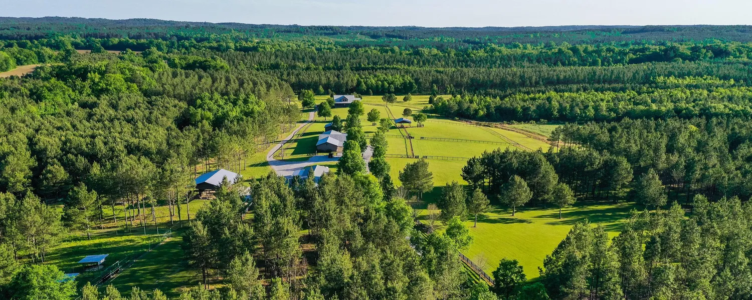 Structures: main house, guest lodge, equipment barn, and horse barn