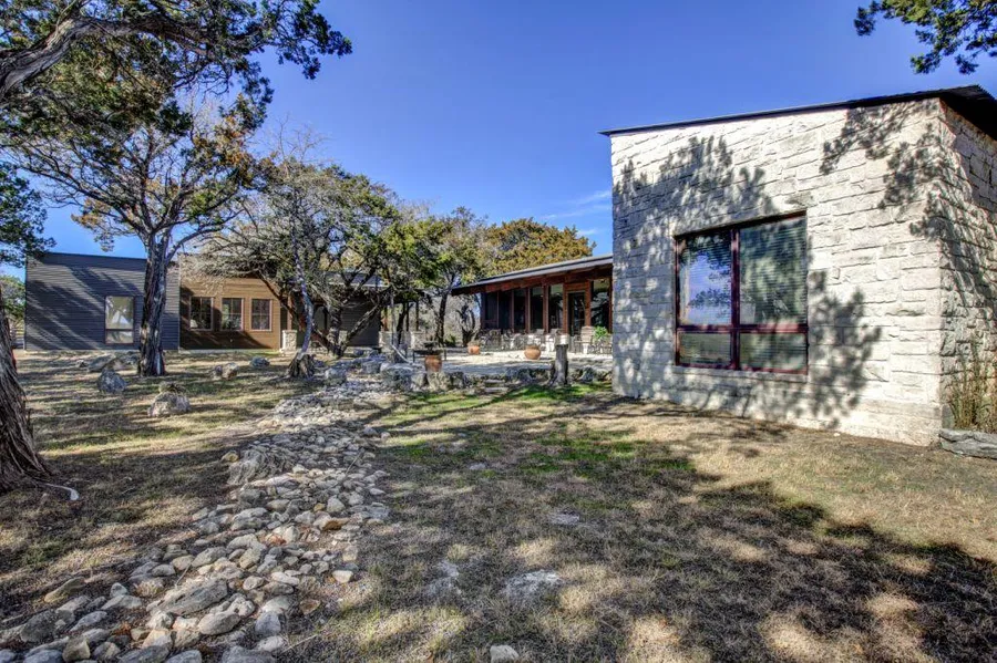 Custom home on 84+ private acres w/seasonal .5 acre tank. Designed to meld aesthetically with its hilltop location; exterior is a unique blend of native stone, metal & cypress siding, and a metal roof. Home was built to last, ensure comfort, and energy efficiency. Engineered wood products used throughout exceed ratings of conventional framing. SIP panels create comfortable, lower humidity living environment even during summer & maintain comfortable temps all year. Timbor treated EPS foam deter wood boring insects. Custom features inside include varied-vault ceilings w/ cypress v-groove paneling & beamed accents, adobe-style hand troweled walls, Jeld-Wen/Pozzi low-E insulated windows, stone accent walls, and granite counters. Living room w/ cozy native stone fireplace is steps away from formal dining room. Island kitchen w/ gas cooking. Breakfast area large enough for table to seat 10-12....