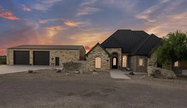 Welcome to 107 Agua Azul, an exquisite 5-bedroom, 4-bathroom custom home located in the desirable Rancho Agua Vista near Lake Amistad. Nestled on 1.29 acres and bordering the Amistad National Recreation Area, this property offers a unique blend of luxury and natural beauty. The home's exterior is striking, with a beautiful stone and brick faade and a sleek metal roof. Inside, custom finishes abound, from the elegant entryway to the spacious living areas. The chef's kitchen is a culinary dream, featuring a large prep island, high-end stainless steel appliances, and a gas cooktop. Expansive windows throughout the home allow for breathtaking views of the lake and surrounding landscape, filling the home with natural light. The living area boasts a cozy fireplace, perfect for relaxing evenings.