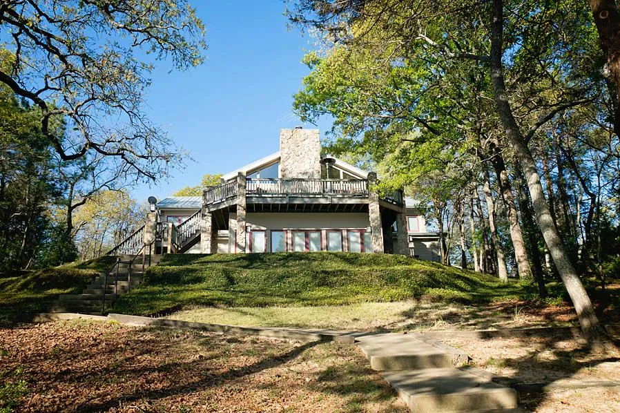 Landscaped grounds blend magically with the rustic appeal of the native East Texas foliage located on the lot. A winding path leads from the home to the lake front, pier, boathouse and retaining wall.
