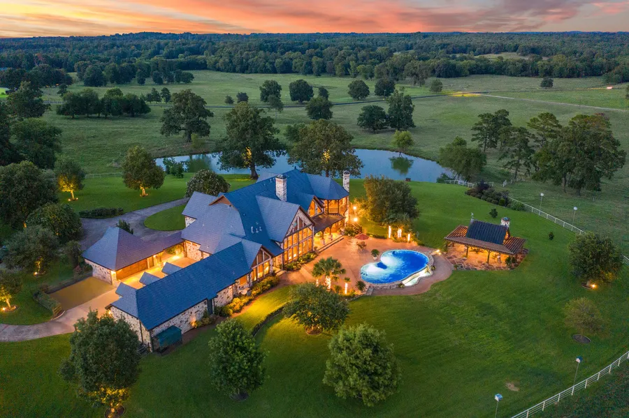 The area around the house is attractively landscaped and irrigated. Outside living is encouraged while enjoying the magnificent views of the lake, pool, and pastures while sitting on the covered porches, balconies, and screened in porch on the back of the house. The negative edge swimming pool is salt water, and the gazebo has an outdoor fireplace, with gas grill, refrigerator, and sink.