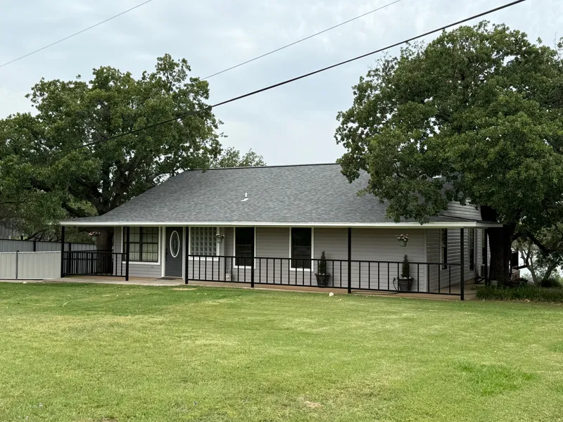 Absolutely stunning lakefront home is located on 2.5 wooded lots on beautiful Lake Cisco. This 3 bedroom, 2 bath home has the most incredible sunset views! The open concept living room, dining room, and kitchen open up to additional outdoor living spaces. It includes over 1,000 square feet of covered porches and includes a fishing cabin with a covered fish cleaning station attached. The location is unmatched with highway frontage just a mile from the public boat ramp. The 3-car garage, storage loft and large concrete driveway, allows for plenty of room for guest parking and storage. With over 100 feet of lake access this property is an unbeatable lakefront location and perfect for relaxation and entertaining.