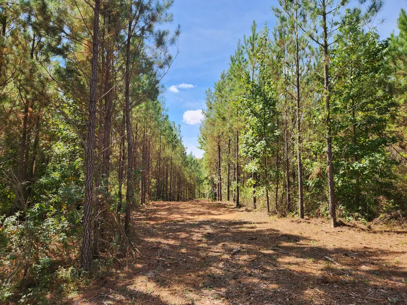 Would be perfect for family compound, enough room for multiple houses. Land is dominated by 14 yr old unthinned pine timber, has long creek frontage and lots of big deer. Excellent road system accesses all points of property. There's also about 6-8 acres of cleared power line area at back of property that could easily be converted to food plots or grazing for livestock.