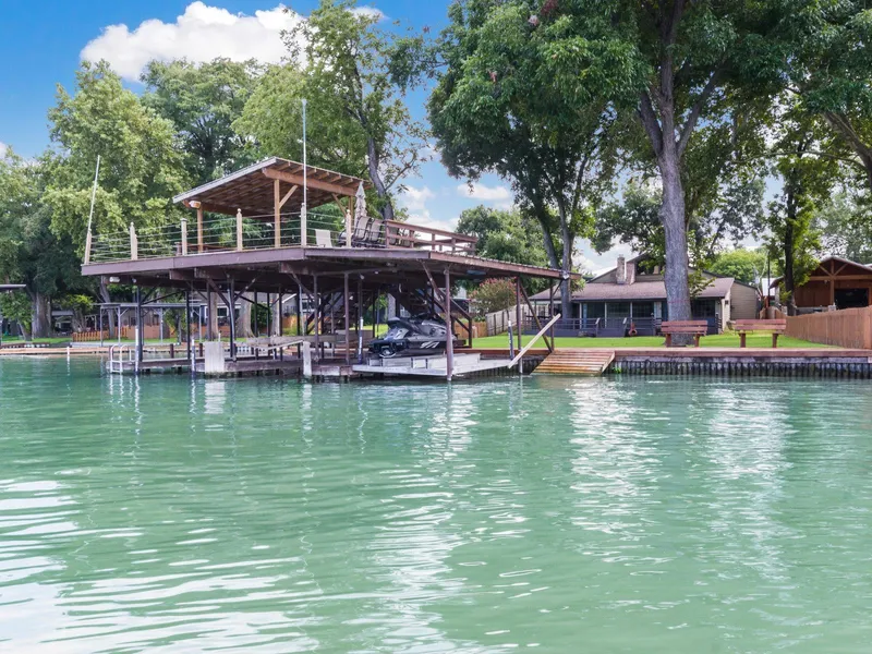Amazing Lake Dunlap home sitting on prime, improved waterfront includes double bay boat lift with a partially covered sundeck on top, plus a covered double jet ski lift. North east facing position allows for miraculous views and cool summer afternoons. 2579sqft main house is 3 bed/2 bath, with a loft, 2 car garage, and multiple entertaining areas. Recently updated guest house includes 3 bed/1.5 bath, bonus room, and 5 car garage. Mature trees cover the vast lawn.