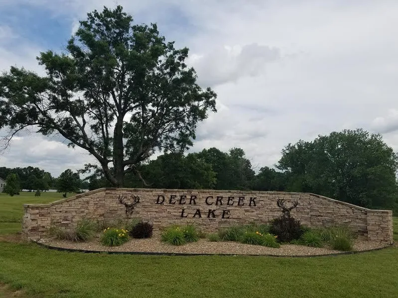 From I-49, take exit 141 for MO-18. Turn onto MO-18E. Shortly after turning onto MO-18, turn north onto Pawnee Drive. You will see the Deer Creek Lake entrance monument as you turn onto Pawnee Drive.