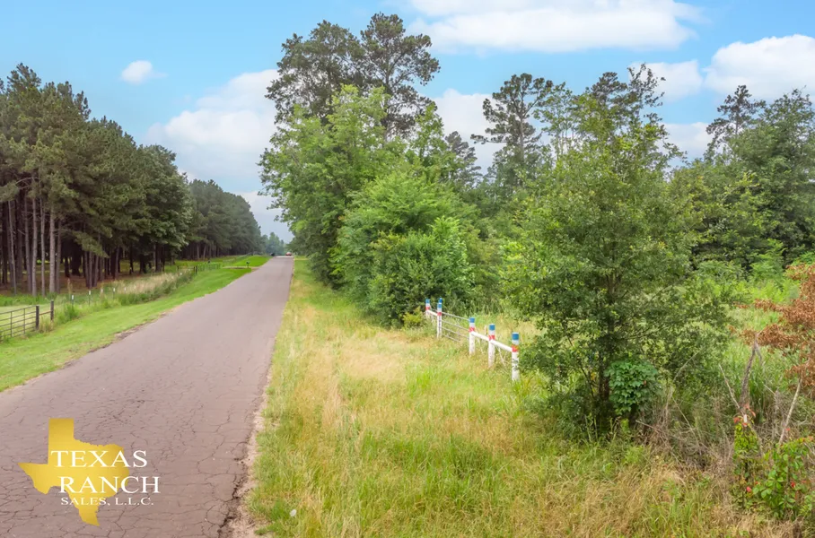 The ranch is 25 miles from Tyler and 95 miles from Dallas, offering rural living within an easy commute to large urban amenities. Additionally, the property is convenient to several recreational areas including the Little Sandy National Wildlife Refuge and the Sabine River, across the highway, and Lake Hawkins, which is 1 mile away.