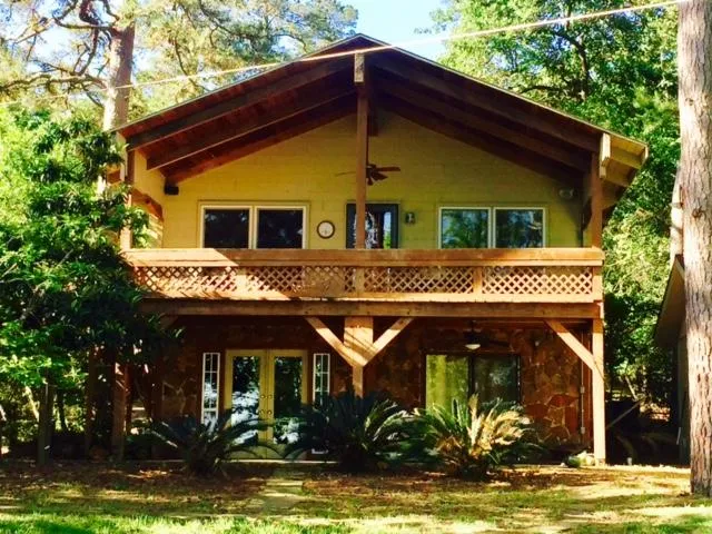 This two story home on an over-sized lot has 85 feet of shoreline, pier, newly constructed boat house, beautiful yard with shade trees, magnolias, palms, and a very private setting! You will be impressed by the upper and lower decks; great for outdoor living! Downstairs, the living area has fireplace. There are two bedrooms, one bath, nice laundry with sink, and great storage. Upstairs, there is a large open living/kitchen/dining area, pretty woodwork, pine floors, wet bar area, high ceilings, two bedroom and a full bath. This home has great storage with two separate garages, concrete driveway, covered carport area for parking a boat, and much, much, more! Call us for more details and to see this great lake house today!