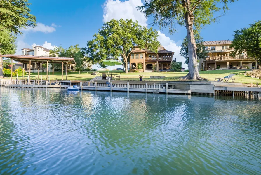The outdoor enthusiasts paradise! 135+ of improved waterfront on a quiet secluded section of beautiful Lake McQueeney. Offers amazing views of wildlife, an abundance of fishing, great swim spot, and perfect for paddling upriver. Large, multi-level patio with giant spa hot tub and outdoor television are ideal for entertaining. Open concept floor plan and large windows allow for spectacular views of the water from most of the house. Luxurious master bathroom offers a double walk in shower and spa tub. Oversized upstairs bonus room can be used as an additional bedroom, or as a family/game room. Perfect for a weekend getaway, or a lifetime of fun in the sun!