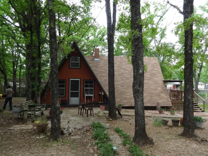 The really cute A Frame is located on a wonderful wooded lake front lot. It has a nice pier, a wood deck, and much more. This would be the perfect weekend retreat. Fish, ski, etc A single person would have a great time living there.