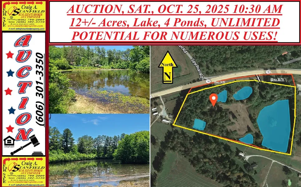 REAL ESTATE: Tract of land located on KY 10 near Garrison, Lewis County, Kentucky known as Pine Lake, consisting of approximately 12 acres more or less (this is a conservative estimate based upon aerial photograph and Soils Mapping estimates which are available for download as part of the Auction Bidder Packet). The acreage indicated by the legal description in the deed is less than that estimate utilized for marketing purposes, however an estimate that is still believed to be conservative. This determination is based upon aerial photograph and Soils Mapping indications and as the description within the deed describes the subject property as consisting of un-surveyed parcels of land subject to several exceptions, most of which other than the conveyance to the Commonwealth of Kentucky Department of Highways are un-surveyed as well. To this date, the property remains un-surveyed), and being the same property conveyed to Edward Sturgill by deed of Denver Sturgill, said deed dated the 6th day of April,2022, said deed recorded in Deed Book 276 page 94, Lewis County Court Clerk Records. See legal description attached hereto as part of the Auction Bidder Packet.