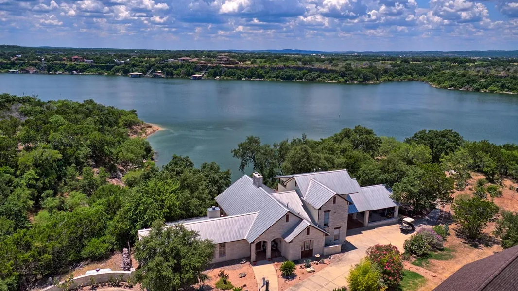 Imagine coming home to this after a busy work day! Situated close to Mile Marker 37 on the highly desired Lake Travis, this Custom Waterfront Home was designed to enjoy the outdoors whether you are inside or out.This area of the lake is just beyond the split w/ The Pedernales River and it is known for fantastic views and tranquility.There are views from nearly every room in the house and each bedroom has access to the outdoors w/patio doors leading out to a covered patio or a balcony.The Great Room has triple patio doors on each side of the Limestone fireplace that open up so It feels as though the Great Room actually expands to the back covered patio. This is the perfect home for people who love to entertain. The kitchen is set up with higher end appliances, custom cabinets w/ built-in sliding spice racks, and double pantries. The center Island has lots of added storage, a special cabinet for the Kitchen Aid mixer and take note of the Granite Table at the end, it acts as a breakfast bar but it's actually a free standing table that could be moved closer to the patio doors.Enter the Owner's suite via the pocket doors into the private office area, you'll notice the attention to detail w/ the built-in book cases, rich wood flooring and even a fireplace. A special window was added above the desk so you can take in the gorgeous lake views while you work.The Owner's bath has a huge closet, an air spa tub and lots of bright windows. Enjoy outdoor living & cooking under the covered pavilion area & BBQ space.
