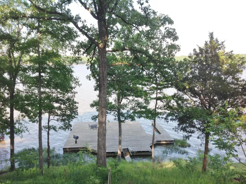 Beautiful view of Lake Tyler from one of the last lots still available on Lake Tyler. Lot is in cul-de-sac. HOA boat ramp near property. 56'x46' pier has 2 boat stalls. One boat stall is to the left of the open stall and is covered with decking. There is 9' of water at the end of the pier when water is at spillway level. Some restrictions include 1500 sq. ft minimum house with concrete foundation and at least 60% brick, stone, stucco, or logs. No metal roofs allowed. Electricity on property. Water available. No trailers or mobile homes. HOA fee $100/year. Lake Tyler East regulations must be adhered to. Rebar on property will remain.