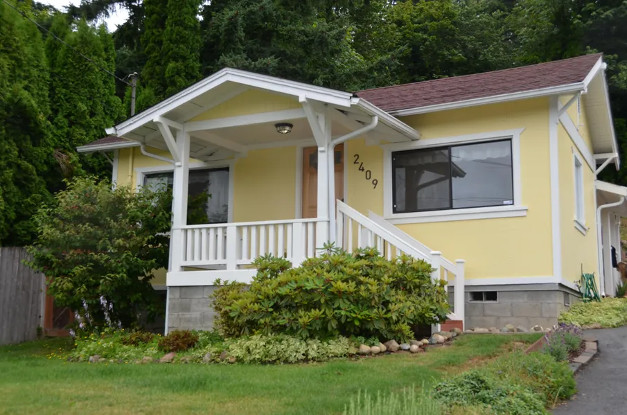 Absolutely stunning, classic home with newer finishes. Updated cabinets, appliances, counter tops, and back splash. Bathroom completely remodeled. 2 large bedrooms, eat in kitchen and spacious living room with peek a boo view of Lake Stevens. Covered entertainers deck and fenced backyard ready for your BBQ's! Property can support building another view home above and existing home qualifies as ADU per city. Commuters dream! 45 mins to Seattle, 60 mins to Bellingham, 13 mins Boeing/Everett.