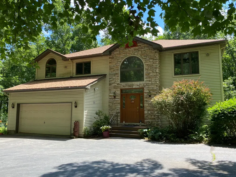 Estate sale makes available this rare find. Private yet convenient to, and winter views of, the big lake. This stately home offers 3 bedrooms, 2.5 baths, dramatic living room with cathedral ceiling and glass faade, gourmet kitchen with appliances, formal dining room, and reading loft. Plus huge basement with rec room/gym and shop. Attached 2 car garage, private rear deck, and gardens.