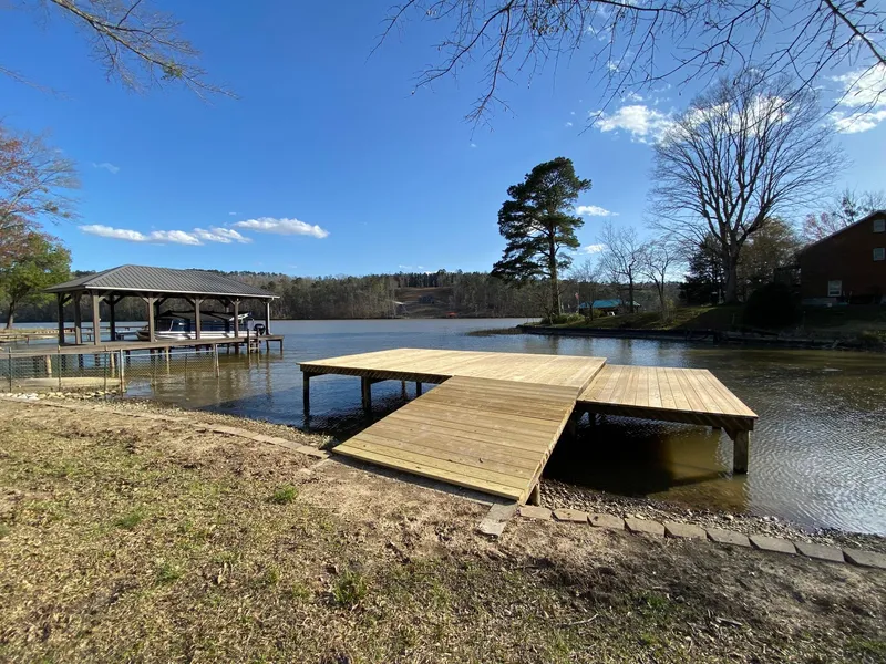 Neely Henry Lake Vacation Getaway! Spacious 2,500 Sq. Ft. 4BR 2BA Doublewide with New Updates: New Roof, New Carpet and LTV Flooring, Countertops, Added Soft Close Hinges and Door Handles on Cabinets, Painted Walls and Cabinets and lots of Cleanup with New Decking on the Pier. Large 2 Bay Garage Insulated and Heated and Cooled. Large Level 1.59+/- Acres to the Water. Yes, it's a flat yard. Very Playful Yard for Families to Entertain Guest. It's a Property that's fun everyone to enjoy the lake at any age and there's no steps down to the water here. Large Shop is approximate 1,800 Sq. Ft. Could have the potential to finish for another living space or guest house.