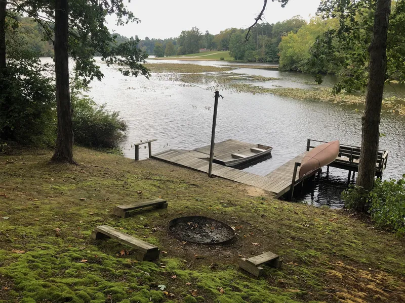 Lakefront Property!!!! They are not making any more lakes, and this property is a gem! Imagine waking up in the morning, loading up your fishing poles into the boat docked in your backyard (yes, you will have your own personal dock), and heading out to catch catfish, bass, bluegills, and crappies, all morning. This lake is gorgeous and clean, and the view from the dock and back-covered porch is amazing. As the sun goes down, the fire pit will be the setting for many evenings for discussions of the day, maybe some fishing stories, discussions about the future, and discussions of yesteryear. The cabin has a kitchen, one main bedroom, one full bath, and a loft big enough to sleep many! The enclosed back porch is amazing and is the ultimate gathering place for quiet summer evenings. The main living room/dining room has a wood burner with a brick chimney. On the two lots, you will find mature...