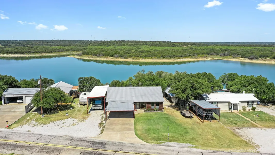 Incredible lakefront home on Lake Cisco! Enjoy watching beautiful sunset view over the water from the huge back covered patio! 2 bedroom, 2 bath home with an office and a guest house that has a bed and bath. Granite counters in kitchen. Custom oak cabinets. Split bedrooms. Tall, vaulted ceilings in living room. Office has a sliding barn door. Mature oaks scatter the hillside that slopes down to the water where you'll find your own boat dock with TREX type decking that will withstand the elements. 2 car garage, 2 car carport. RV carport and separate boat carport. 12x12 workshop. Carpet and tile floors in the home. Back covered patio is approx. 22x30. 2 on demand tankless hot water heaters on each side of the house. This part of the lake is the channel and is deep water. Water to the house is supplied by the lake and the dock has a pump house. Current owners have had very low utility bills. Don't miss out on this amazing, one of a kind property!
