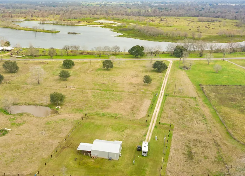 Unrestricted Charming 5-Acre Ranch by FM 528, FM 1462 & Proposed TX-99 has 1/1/1 Barndominium, Pond & Gorgeous Views of Coffee Lake. Property has ~287 feet Coffee Lake Dr. Frontage (see plat). Centrally located between Angleton & Pearland about 20 miles away; Houston & Freeport about 35 miles away. Several mature oak & pecan trees scattered throughout cross-fenced green pastures with plenty of room to build more homes. Quiet community surrounded by lakefront properties & ranches with custom-built homes. Bring your horses & spend nights gazing at twinkling stars. Great location close to TX-288 & FM 521 makes commuting a breeze to Downtown Houston, Texas Medical Center, Hobby Airport, Freeport Plants & Gulf Beaches. TX-99 is proposed to cross TX-288 at CR 60 about 10 miles NE of the Property (see map). Perfect for country living with horses, producing hay/crops, and raising farm animals.