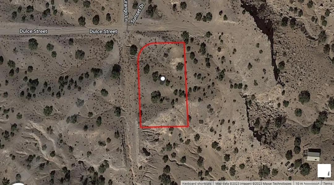 Nice half-acre lot, with the beautiful views of Pedernal and Sierra Negra that are common in Santa California City. This is Georgia O'Keeffe country. This lot also has beautiful valley views to the east. Interesting formations near the property and the property itself is hilly but there are small flat spots to nest on. Only about a mile off paved NM 554. No utilities on the lot but electricity is close. Well and septic needed.