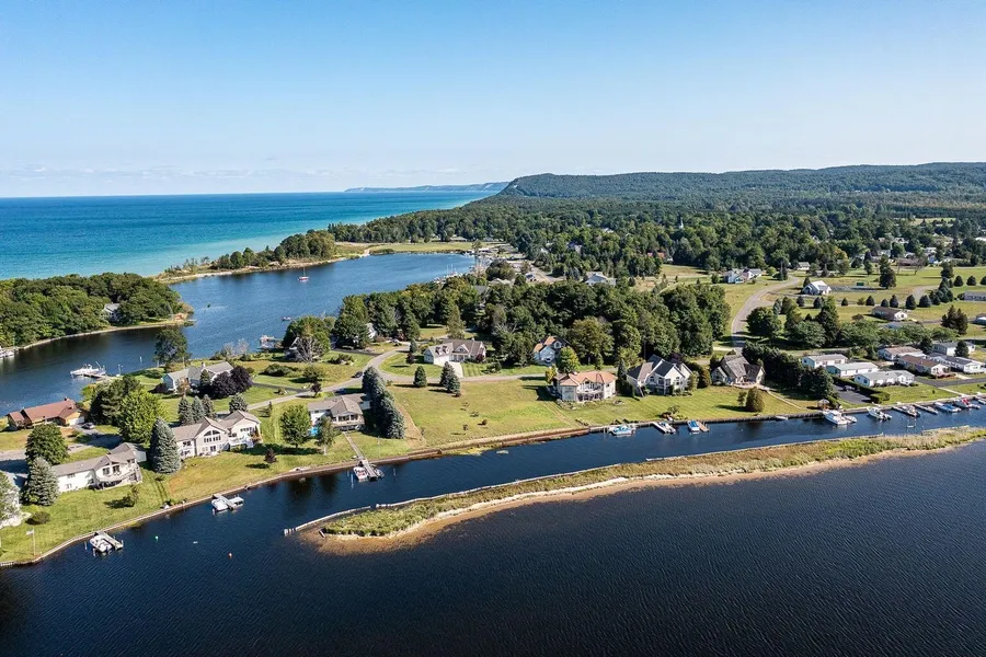 Experience 100 feet of breathtaking lake frontage on pristine Arcadia Lake! This exceptional double lot features a level building site with a gentle slope to the water, perfect for a walk-out design, and is protected by a substantial steel seawall. Revel in the serene views of Arcadia Lake, which connects directly to the vast expanse of Lake Michigan. The nearby Arcadia Marina provides convenient boat launching, hauling, and storage, and you can even moor your boat along your private seawall. Licensed short-term rentals are permitted by Arcadia Township, offering excellent potential. This tranquil setting is a recreational paradise, just moments from the renowned Arcadia Bluffs golf course and fine dining, as well as an abundance of hiking trails, and protected conservancy land.
