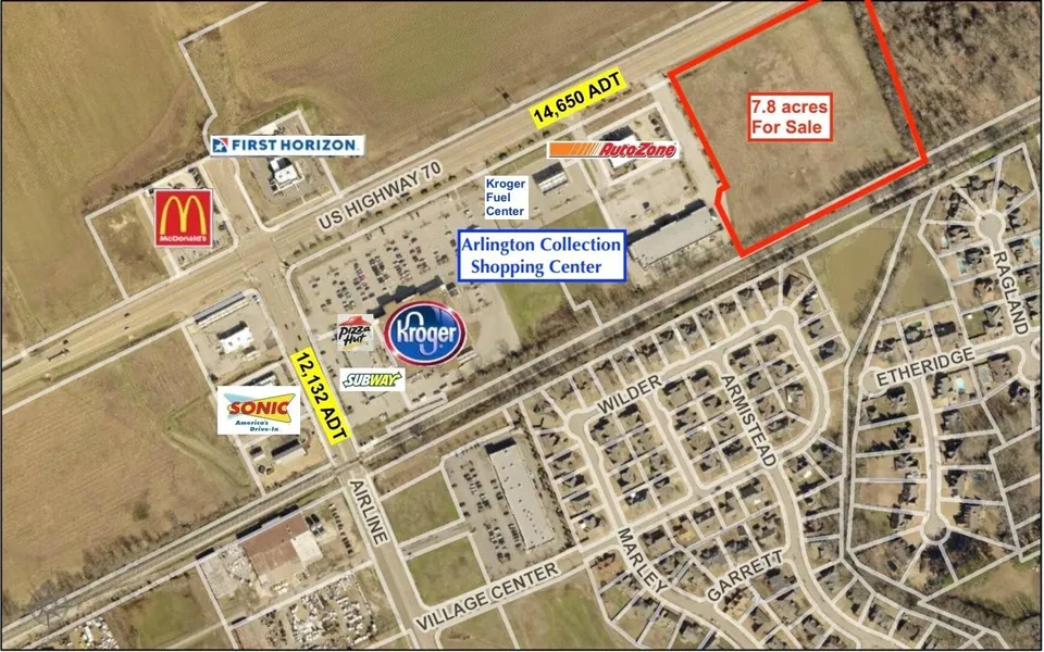 Available. 7.79 acres of commercial land. Cleared and ready to go. All utilities to the site. Lots of Road frontage. Will divide and parcel out for the right user.