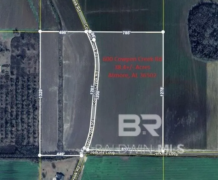 38.4 +/- ACRES LOCATED OUTSIDE OF CITY LIMITS, WITH NO HOA, NO COVENANTS OR RESTRICTIONS IN THE CANOE COMMUNITY! Explore the opportunities available with this 38.2-acre farmland tract located on 600 Cowpen Creek Rd in Atmore, AL. This rural property offers a wide stretch of open, usable acreage suitable for agricultural operations, pasture, livestock, equipment placement, or future development. The land provides flexibility for a future homesite, mobile home, tiny home, or company use, giving buyers multiple options for long-term planning. The land features frontage along a county road, offering access for farm activities and daily operations. Its location provides convenient connectivity to major regional routes, including Interstate 65, supporting efficient travel and transportation. Call to schedule your showing today! Buyer to verify all information during due diligence.