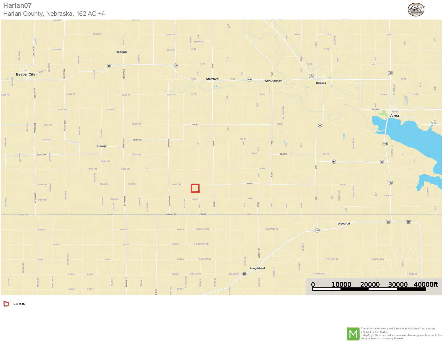 Research Parcel InformationFrom Stamford, Nebraska travel south on B Road for 7 miles. Head west on 704 Road for 1 mile to A Road. The farm is located on the southwest corner of 704 Road and A Road.