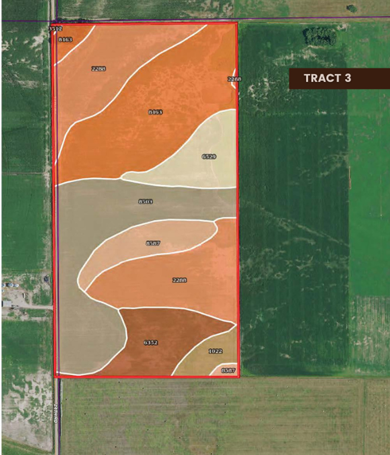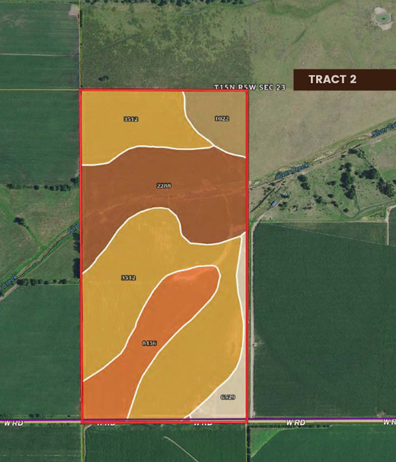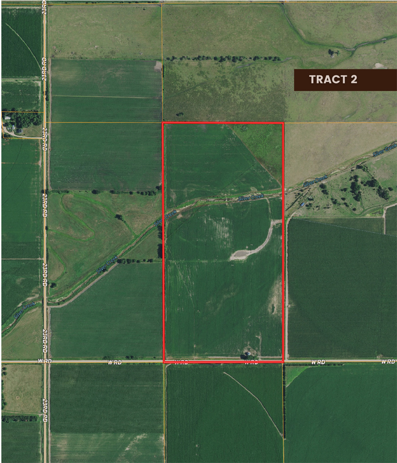 Up for auction are 3 nice laying flat farms located close to multiple elevators and an ethanol plant. Tract 1 and Tract 2 are just across the road from each other. Each is set up for a half swing pivot with the ability to water the corners. Tract 2 has Silver Creek running through the north part of the farm. Tract 3 is a nice flat pivot-irrigated 80 with the ability to irrigate the corners.