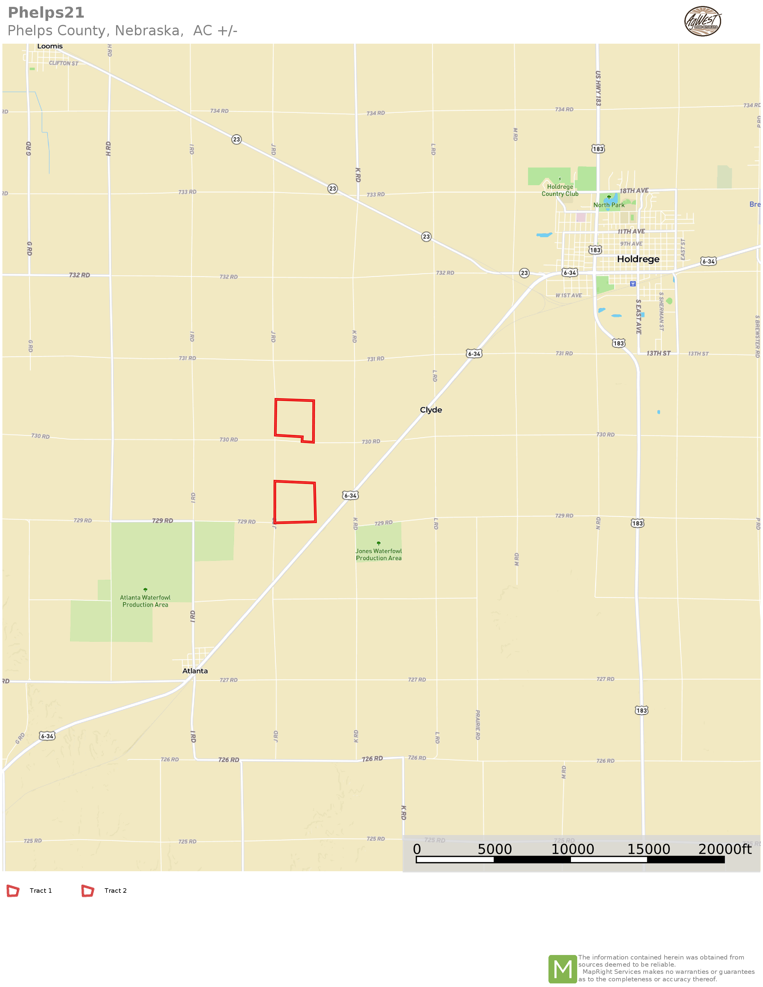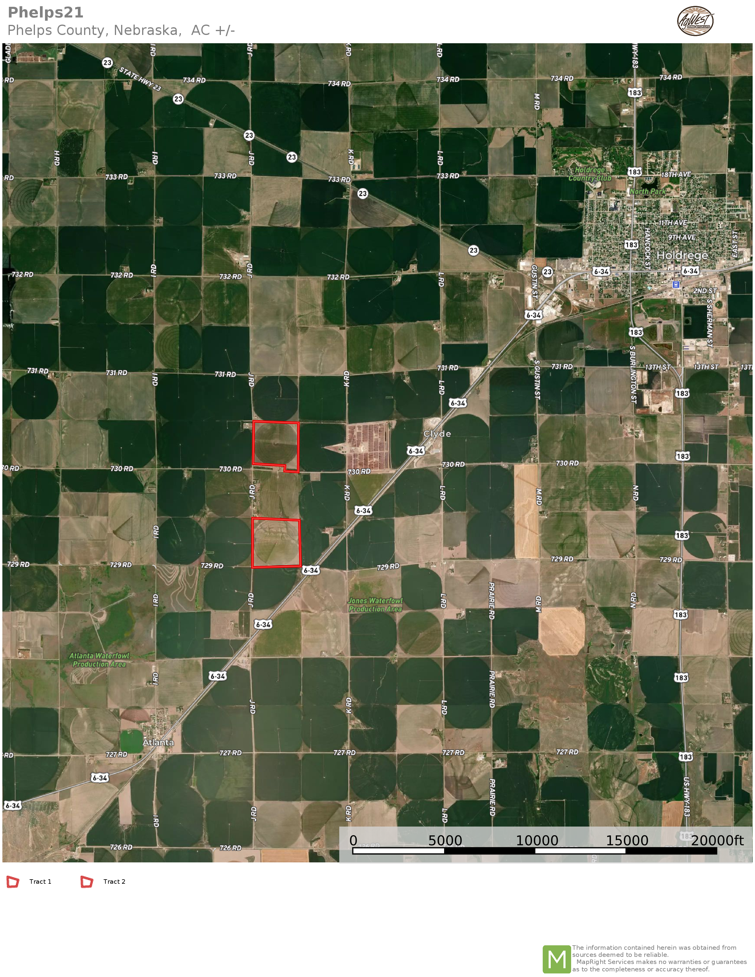 Research Parcel InformationTract 1 - From Holdrege, travel approximately 2.5 miles southwest on Highway 6/34 to 730 Road. Head west 1.5 miles to J Road. The farm will be on the northeast corner of J Road and 730 Road.
