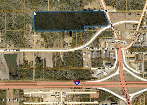 Two parcels totaling approximately 34.58 acres just north of Interstate 10 Exit 50 on the NW quadrant of Tucker Road and the new Cook Road connector (less roughly 200' x 250' at the SE corner). Both parcels are zoned C-4 (Corridor Commercial). North of the Ocean Springs city limits. Apparently has a Biloxi address but is located in Jackson County, just north of Ocean Springs. Parcels appear to have several flood zone designations, including X, X500 and AE. St. Martin School District. Excellent opportunity to pursue commercial on the front and residential development on the rear of these parcels. Rear parcel appears to have additional access via a 50' easement running north off of Mallett Road/Cook Road Connector.