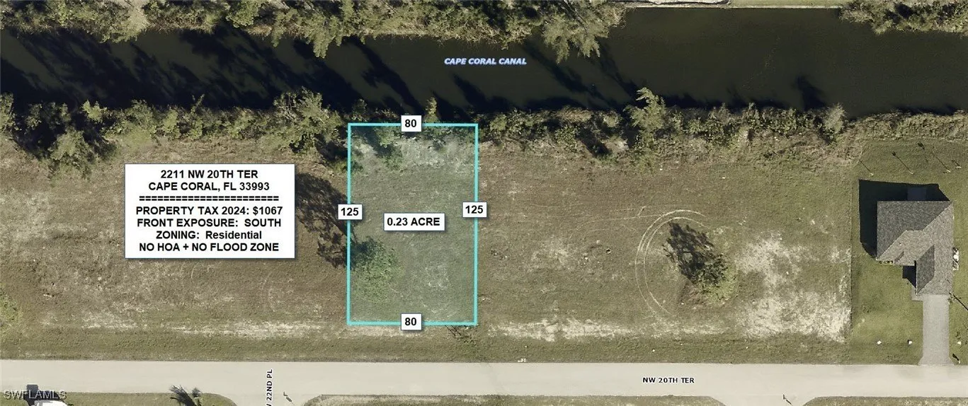 Beautiful canal Lot on this highly desirable area of Cape Coral, Cape Coral Canal can access several lakes in its proximity. Located close to schools, shopping, beaches, dinning. NOT in FLOOD ZONE, taxes are low, buy now before price goes higher and can build later.