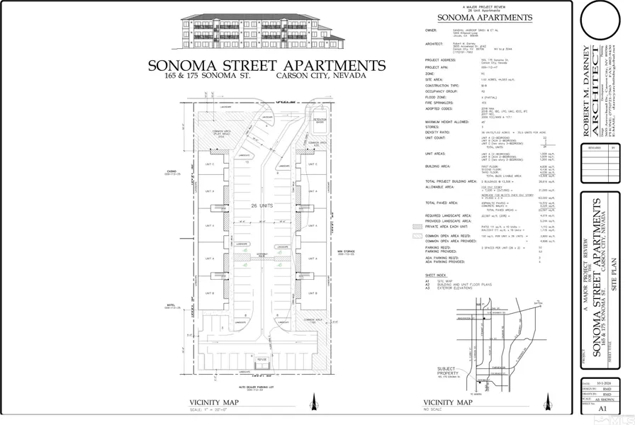 1.02 ac Level lot ready to build 26 Apartments . Zoned RC The Plans are for 26 units consisting of 2-bd 2-ba apartments. Sewer and water lines are at the property including sidewalk and curb plus the parcel is fully fenced . The Plans have gone before Carson City Planning and the architect has the project comments for the final plan needed for the special use permit and project to move forward. The time is right for new units ,located off South Carson st and close to public transportation , shopping centers . ** Seller Financing Available** Please call listing agent for architect and Plan information