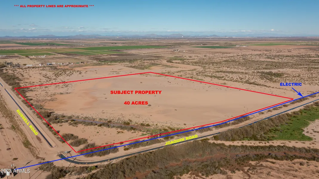With Tractor Supply, Kohler, CCP Group, Lucid Motors plant doubling in size, Attessa Motorsports Park underway, the town of Casa Grande is expecting 20,000+ NEW JOBS! That's the town's population growing by ⅓ it's current population. Where will everyone live? ***DON'T MISS YOUR CHANCE TO INVEST AHEAD OF GROWTH****This property is just south of Interstate 8 between Russell Road and Montgomery Road full Diamond Interchange. Mountain Views! Close to Proposed I-11 Corridor! Just south of Casa Grande - only an hour to Sky Harbor, Phoenix & Tucson! Russell Road paved from Hwy 84 to Arica Road. Located in a prime farming area. Power adjoining property along Joaquin Road. General Rural zoning. More photos and drone Aerials coming soon! Adjoining 40 Acres to east also ava