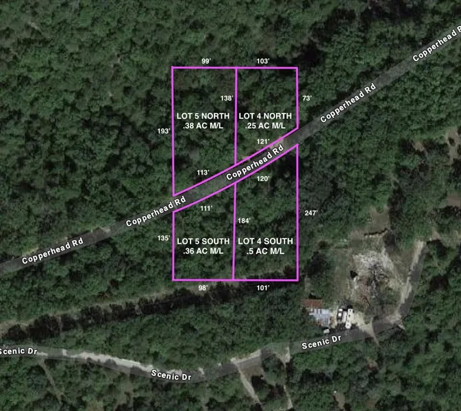 LOT #5 North and South of Copperhead Rd. *As seen in outline. Looking for a lot at Bull Shoals Lake? Here is your chance to own a secluded double lot on a private county road that is walking distance to the lake. What a treat to be steps away from the peacefulness of Bull Shoals. Property connects to Corps of Engineer land.