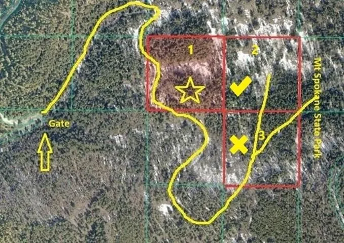 30 acres in 3 Ten acre Parcels (can be bought separately) at the foothills of Mt Spokane beautiful Mt Kit Carson close to the border of Mt Spokane State Park This easy access remote location behind locked gates is host to abundant wildlife, vegetation, trees and views. Call for details.