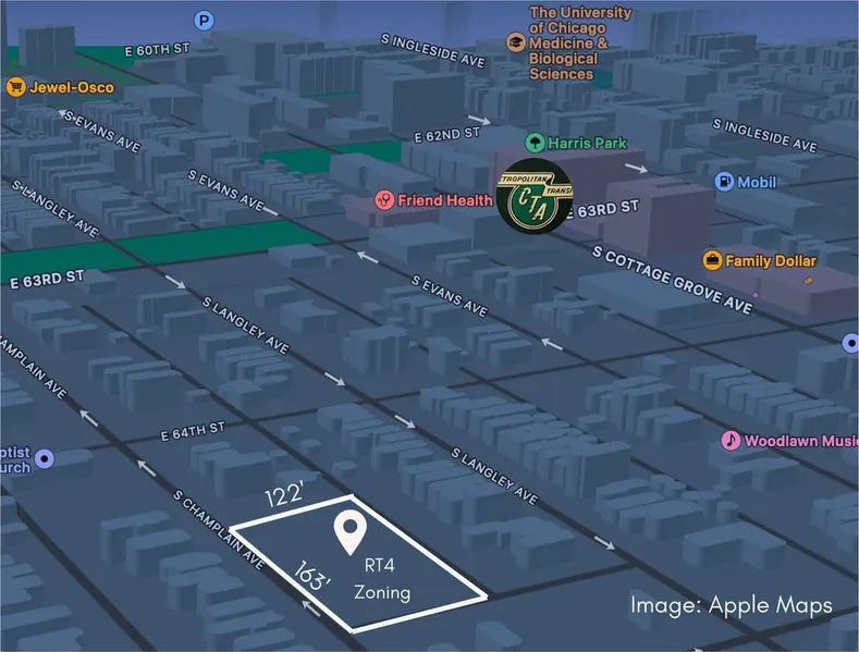 Big Urban Infill Opportunity 164x122 Zoned RT-4. South West Woodlawn is one of the hottest neighborhoods for redevelopment leading the way in permit applications. Missing Middle Housing is being created in Woodland at a brisk pace and you should get your piece of land, before they all get bought up. Seller may subdivide, so hurry if you want total package. Ideal site for a larger Multi Family Development or to build spec 2-4 unit buildings. This site represents a rare opportunity to build at scale with the opportunity to subdivide into 6+ parcels with its 164 feet of frontage. 4 Pins totaling 19,992 square feet of cleared vacant land, ready to build. Many new construction properties surround this desirable location. Just minutes to the Lake, Hyde Park, University of Chicago and Obama Library. Drive by today, survey available.