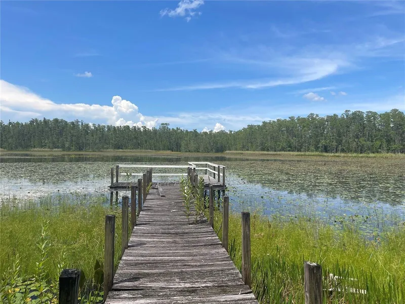 Create your ultimate retreat here, situated at the end of a secluded road and offering unparalleled privacy. There is a dock that extends out into the lake, perfect for docking your boat or enjoying evenings of peace and serenity. If you take a look at this property, you will see how magnificent it truly is. There is a fence surrounding the sides and front; this property is ready to bring your vision to life. The owner has skillfully maintained the land, keeping underbrush at bay for easy exploration of this truly unique oasis. Platted as 10 Acres, however, the uplands are stated by the county property appraiser, as shown in the pictures, with just under a half acre available for building. Walking it seems like there are more uplands. The only way to verify how many acres are high & dry would be a wetland delineation survey, which determines the boundaries and extent of wetlands on a property. This lot is one of a kind. Call for more information.